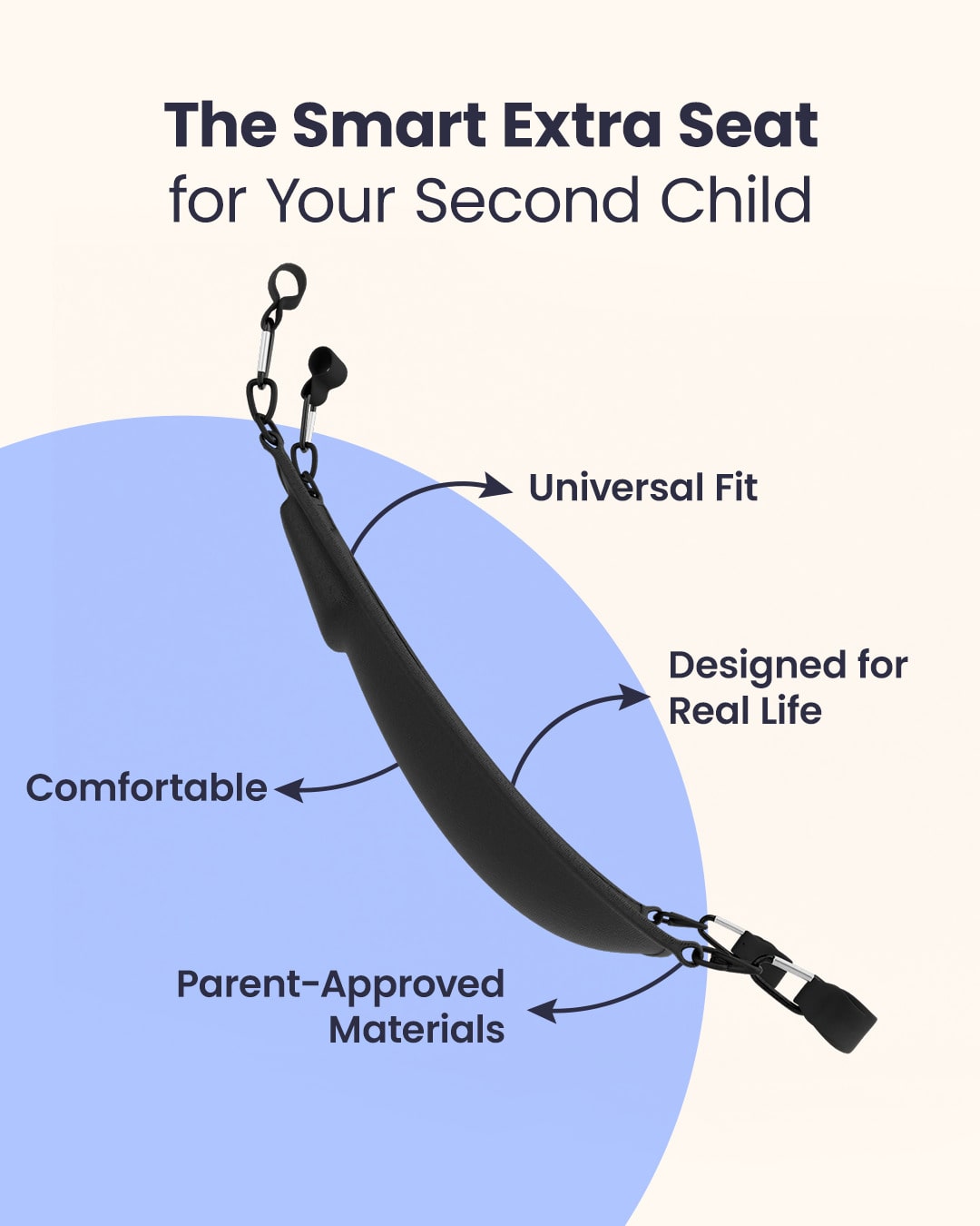 Hoppie adds an extra riding spot for your child, with a cozy seat and clear instructions to help you use it safely on your stroller.