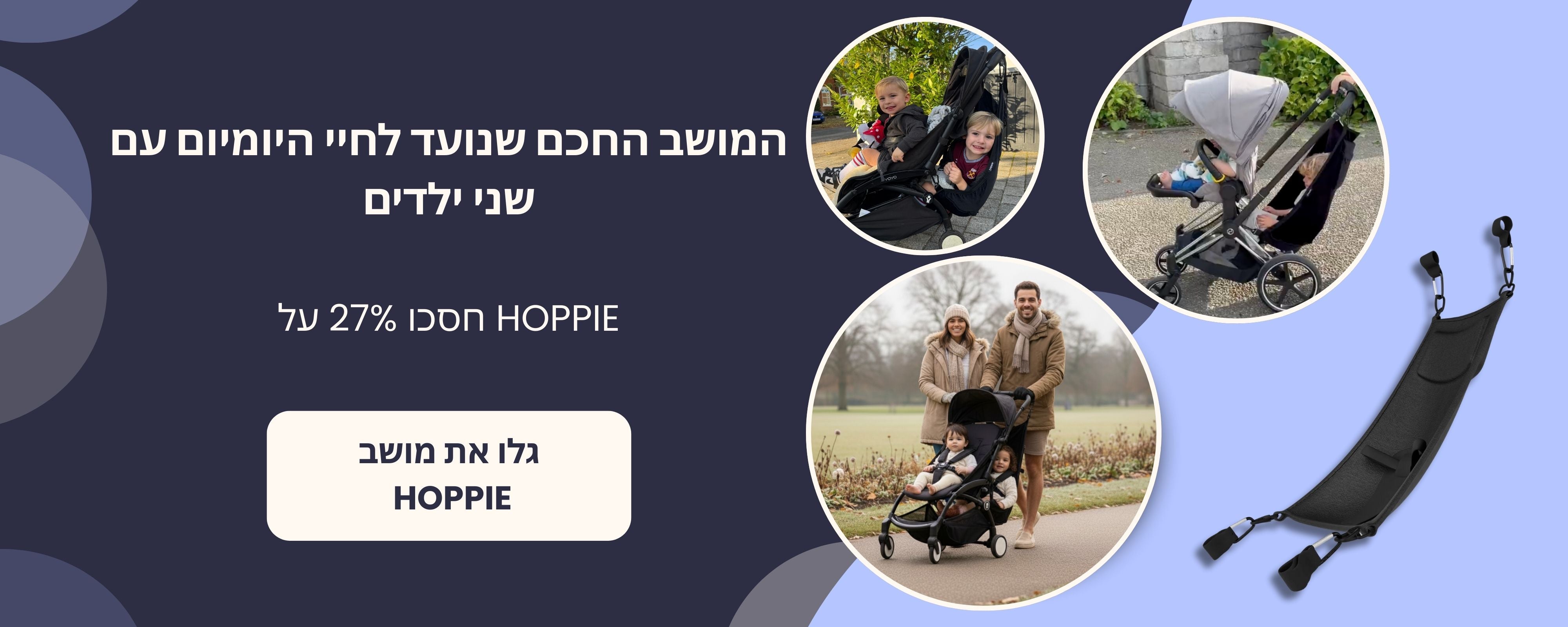 Hoppie is compatible with most full-size and travel strollers that have a rear frame bar or solid back handles.