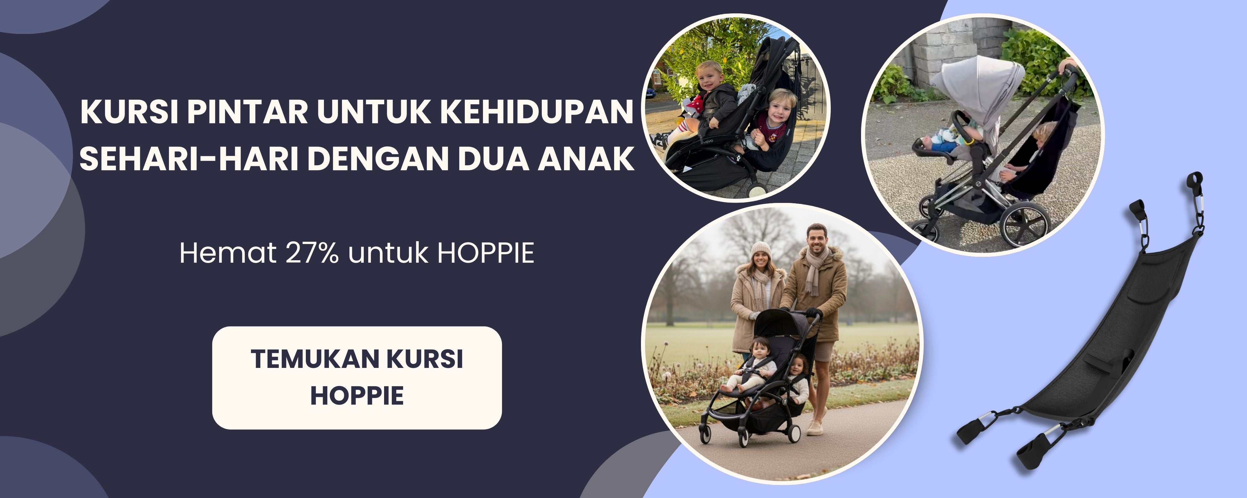 Hoppie menambahkan tempat duduk ekstra untuk anak Anda, dengan kursi yang nyaman dan petunjuk jelas untuk membantu Anda menggunakannya dengan aman pada kereta dorong Anda.