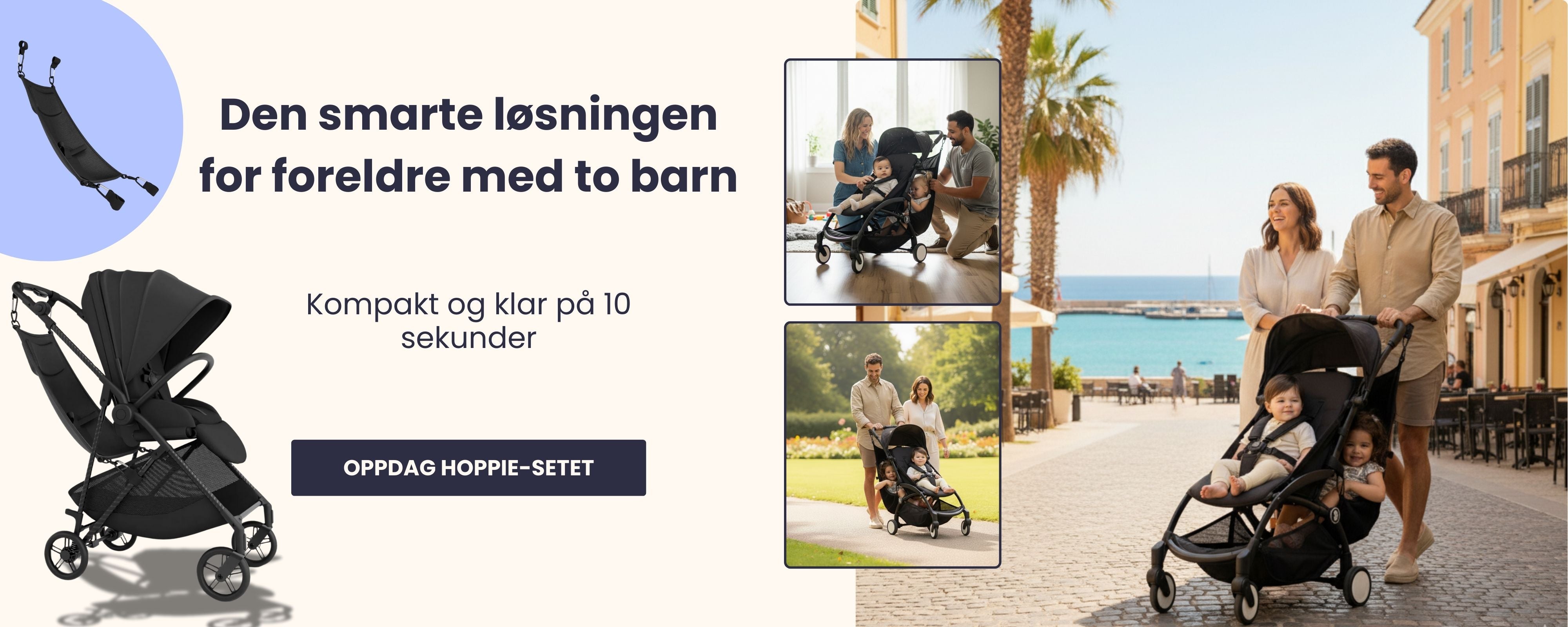 Føler du også at det å gå ut med en baby og småbarn er vanskeligere enn en hel dag på jobb? Det er sant fordi noen ganger kan disse utfluktene bli stressende utfordringer. Først må du håndtere lurer, snacks, raserianfall og mye utstyr for å komme deg ut av huset i tide. Foreldre med to små føler vanligvis at det er en oppgave å planlegge en rask utflukt. Men med litt planlegging og forberedelse, det trenger ikke å være kaotisk. Noen eksperttips og riktig forståelse kan gjøre utfluktene dine jevnere og mer hyggelige! Med riktig utstyr kan du forandre hele opplevelsen av en tur til parken eller en handletur. Hoppie er ditt pålitelige og rimelige utstyr for å gjøre utfluktene minneverdige. Det er designet nettopp for slike øyeblikk. Dette kompakte, klipsbare setet for småbarn lar deg holde deg i bevegelse uten tyngden av en dobbel barnevogn. Babyen og småbarnet ditt forblir trygge og glade gjennom hele utfluktene, og det gjør du også. Gjennom denne artikkelen vil vi gi nyttige måter å håndtere utflukter med to barn uten problemer, og hvordan Hoppie kan spare energien din til bedre foreldreskap. Hvorfor er det så vanskelig å forlate huset med to små barn? Alle som har prøvd vet at i det øyeblikket du går ut med en baby og et småbarn, driver du en full operasjon. Du må balansere lur, humør, snack-forespørsler og bleieskift. Dessuten kan du ikke glemme småbarnet som insisterer på å gå til de klarer det. Nesten tre av fire foreldre med to barn under fem sier at utflukter er den mest stressende delen av dagen deres. Du tar enten med for mye eller glemmer det ene du trengte. Ett øyeblikk er alle fine; neste øyeblikk gråter babyen din i supermarkedgangen. Småbarn nekter ofte å bruke barnevognen etter 10 skritt. Og på en eller annen måte forventes det at du bærer en baby, en stelleveske og kaffen din, og fortsatt skyver barnevognen. Men i stedet for å bli perfekt, kan du prøve å være bedre forberedt. Med riktig rutine og utstyr, som Hoppie, kan du holde deg rolig, holde ting i gang, og gjøre utfluktene mye mer gjennomførbare. Hvordan planlegge utflukter med baby og småbarn uten stress Hver forelder ønsker å tilbringe tid med barna sine på forskjellige, friske og sunne steder. Barn liker utflukter med foreldrene sine. Med riktig planlegging kan du gjøre utflukten fredelig og minneverdig med barna dine. Slik kan du gjøre det: Sene morgener fungerer best De fleste småbarn er på sitt lykkeligste etter frokost og litt hvile. Energien synker gjerne tidlig på ettermiddagen. Derfor er sene morgener det beste tidspunktet å gå ut på. Et rolig vindu oppstår vanligvis mellom mating og lur for barna. Dette tidsrommet gir minst motstand og størst sjanse for en smidig opplevelse. Én destinasjon holder roen Et enkelt mål gir utflukten struktur uten å føles overveldende. Foreldre som planlegger et raskt parkbesøk eller en matvarehandel opplever ofte færre sammenbrudd. Oppmerksomheten er kort, og overganger er vanskelige. Din fokuserte plan senker det emosjonelle nivået og gjør hjemreisen mye mindre kaotisk. Ekstra snacks løser de fleste problemer Et småbarn med mat er vanligvis et rolig småbarn. Sulten kommer raskt når hjulene treffer stien. Du kan ta med flere snacks enn forventet for å unngå drama midt i utflukten. Noe lite til forelderen skader heller ikke. En stille godbit på en benk kan føles som en reset-knapp for deg. Forutsigbarhet hjelper småbarn å føle seg trygge Daglige rutiner gir trygghet i ukjente situasjoner—småbarn som sitter i samme barnevognsete eller følger en kjent snackrutine holder seg roligere. Kjennskap til stedene gir dem en følelse av sikkerhet. Kjente mønstre gjør en potensielt kaotisk utflukt til noe de kan forstå og nyte. En forberedt veske gjør alt enklere Din organiserte stelleveske fjerner gjettingen før du går ut. Bleier, våtservietter, reserveklær og noen små leker kan dekke de fleste nødsituasjoner. Du kan lage en rutine for å fylle på vesken hver uke. På denne måten slipper du å stresse før du går ut. Denne forberedelsen hjelper foreldre å holde fokus på barna i stedet for glemte ting. Rolige øyeblikk betyr mer enn perfekte Feilfrie utflukter kan være vanskelige med to små i følge. Suksess ser ofte ut som å overleve en matvarekø uten å felle en tåre. Å le av rotet myker opp situasjonen. Familier som feirer fremgang fremfor perfeksjon nyter vanligvis disse små eventyrene mer. En fredelig hjemkomst slår en perfekt plan hver eneste gang. Din sjekkliste for utflukter med baby og smårolling De fleste foreldre vet at det å dra ut med to små ofte blir en forvirrende pakkemission. Men å bare ta med det som er viktig kan gjøre en stor forskjell for en smidigere utflukt med baby og smårolling. Smarte familier oppdager at en lett barnevogn eller vogn fungerer best når plassen er trang og rask bevegelse er viktig. En myk, bærbar bæresele kan være spesielt nyttig når barnet tar en lur midt i en spasertur eller i trange områder. Stellevesken gjør vanligvis det tunge løftet. En godt forberedt veske inkluderer ofte: Bleier, våtservietter og et klesskift Snacks som ikke smelter eller smuldrer overalt En drikkekopp og en vannflaske Et lite trøstetøy eller en fidget-gjenstand De fleste foreldre føler seg også tryggere med: Et lite førstehjelpssett Hånddesinfeksjon En fulladet powerbank Et lett teppe eller ammebeskyttelse Hoppie: Ditt pålitelige utstyr på tur med baby og småbarn Å håndtere to barn på utflukter resulterer som regel i å sjonglere slitne ben, kamp om barnevognen og sporadiske offentlige sammenbrudd. Hoppie er et klips-på-sete for småbarn som festes til din eksisterende barnevogn, noe som gjør utflukter mye enklere. Foreldre synes det er en av de smarteste triksene for småbarns- og babybarnevogner som finnes i dag. Hoppies design er ultralett, og den kan foldes helt flat, så den legger ikke til ekstra bulk når den ikke er i bruk. N