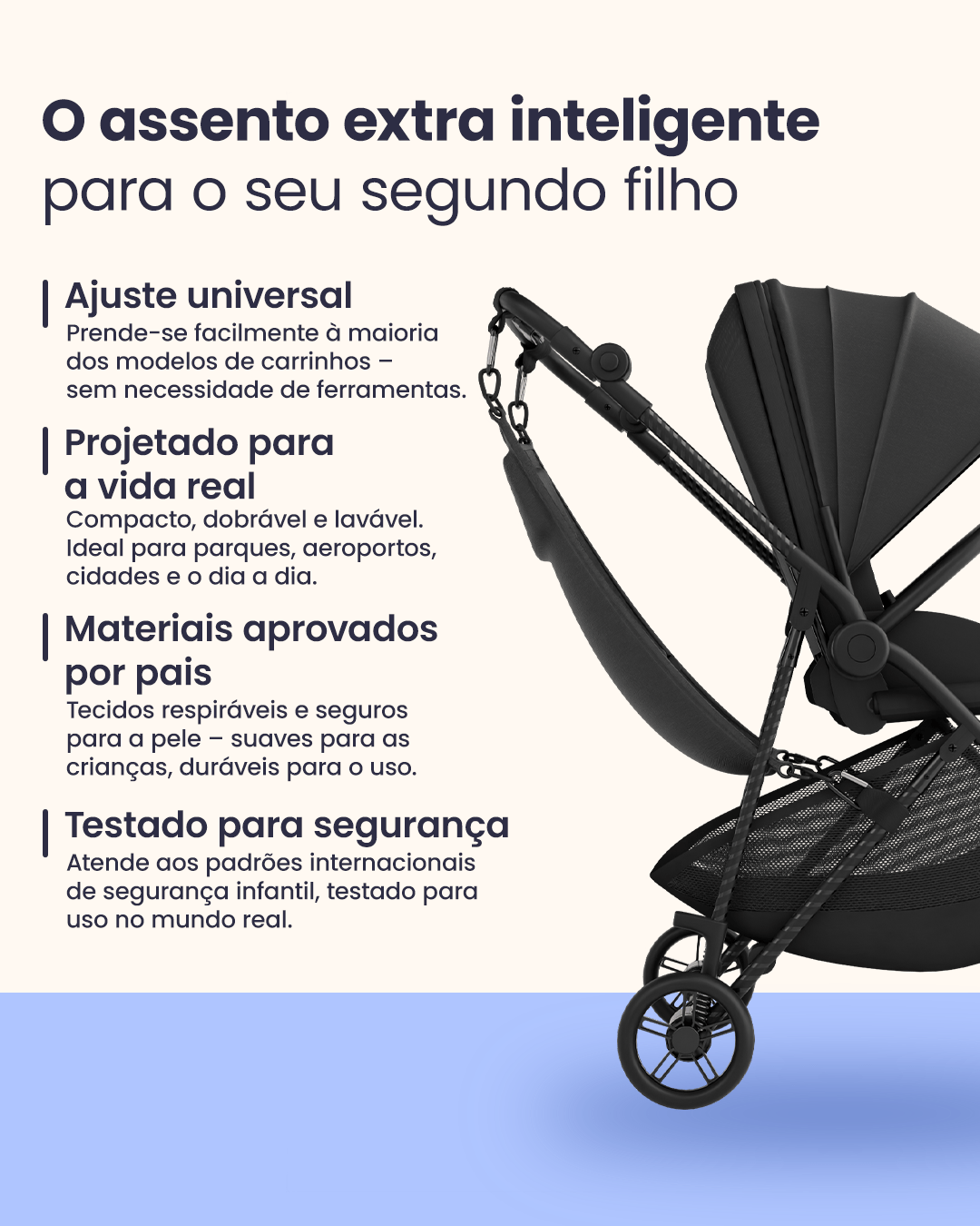 • Liberdade para pais de dois – Hoppie torna os passeios com duas crianças simples e práticos