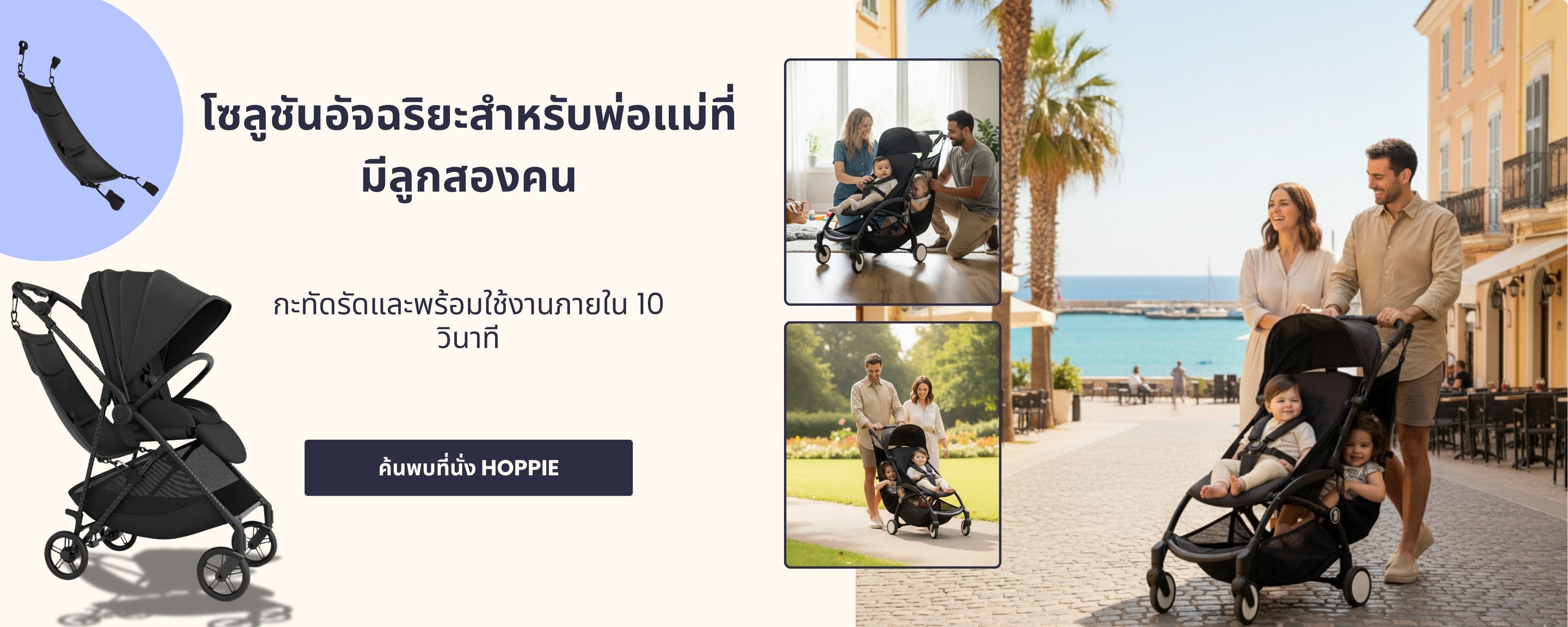 Hoppie เพิ่มที่นั่งสำหรับเด็กของคุณ พร้อมที่นั่งสบายและคำแนะนำชัดเจนเพื่อช่วยให้คุณใช้งานได้อย่างปลอดภัยบนรถเข็นเด็กของคุณ